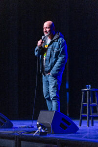 Johnson’s style resists spectacle. Seated on a stool, leaning slightly forward, he builds long-form narratives rather than chasing quick punchlines. Stories stretch, pivot, and land cleanly. He threaded humor through commentary on national headlines without overplaying the moment. When he shifted toward civic engagement, applause cut through the laughter. The transition felt measured, not theatrical. Johnson trusted the room to follow along.
